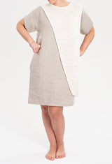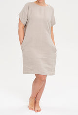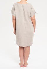 Lin kjolen har to dype gode lommer i siden og en enkel halsringning med