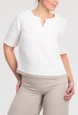 Hals utringningen har en splitt øverst og lukkes med en liten knapp i nakken.