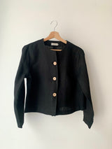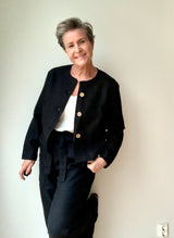 Frida jakken er en klassisk liten jakke. Det er en enkel jakke som er like fin til kjole som til bukse. Lett innsvinget og lukkes med tre knapper i front.