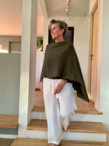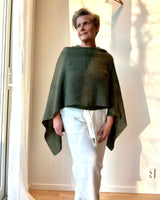 Ponchoen er en av mine favoritter. Herlig å ha med på reiser. Rull den sammen og putt den i veska eller kofferten. Ponchoen kan brukes til et hvert antrekk. Den er strikket i blandingen 70% lin og 30% bomull og har derfor en tyngde som gjør at den "faller" fint.