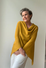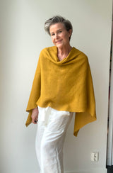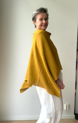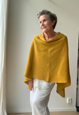 Ponchoen er blitt en favoritt. Den er anvendelig til mange anledninger. Like fin over kjole som bukse og kan enkelt brukes i stede for en jakke. Ponchoen kan lett rulles sammen og puttes i kofferten på reiser. Den har en blanding av 70% lin og 30% bomull og derfor " faller" den fint.